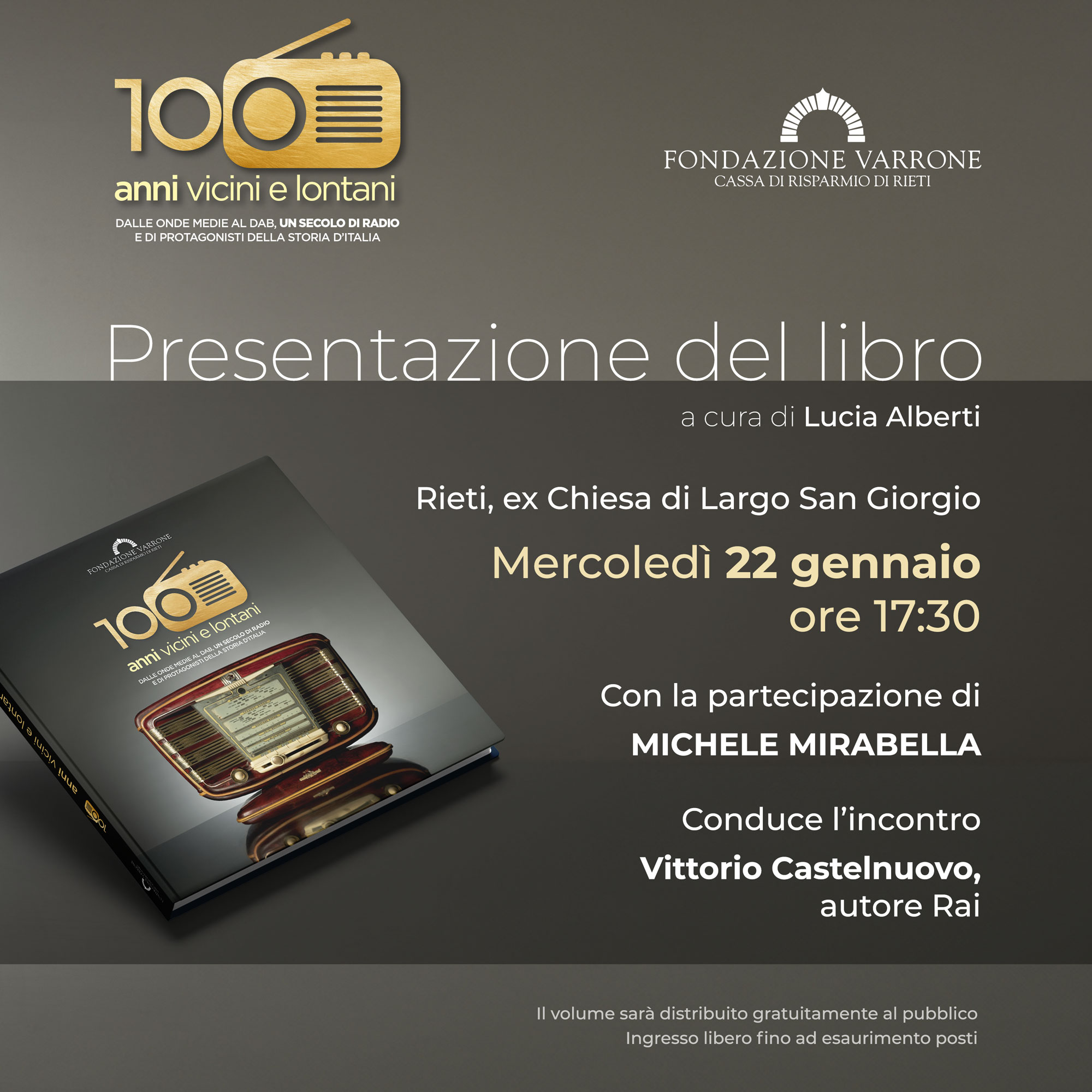 Cento anni di storia della radio, attraverso la tecnologia, la sua evoluzione nel tempo, le storie che ha saputo raccontare con le voci dei personaggi che l’hanno animata, e le forme che ha preso.